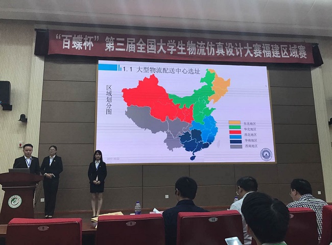 此次全国大学生物流仿真设计大赛是由中国物流生产力促进中心发起并主办的一项专业物流赛事,分为省赛和全国决赛两个阶段。在省赛中,我校师生刻苦训练、准备积极,通过运用LINGO软件、ABC分类法在区域物流中心选址设计、物流成本核算、仓储优化等方面提出适宜企业的独到见解,在包括福州大学、福建农林大学、集美大学、武夷学院等16所本科院校的27支队伍参加角逐中脱颖而出赢得评委青睐。