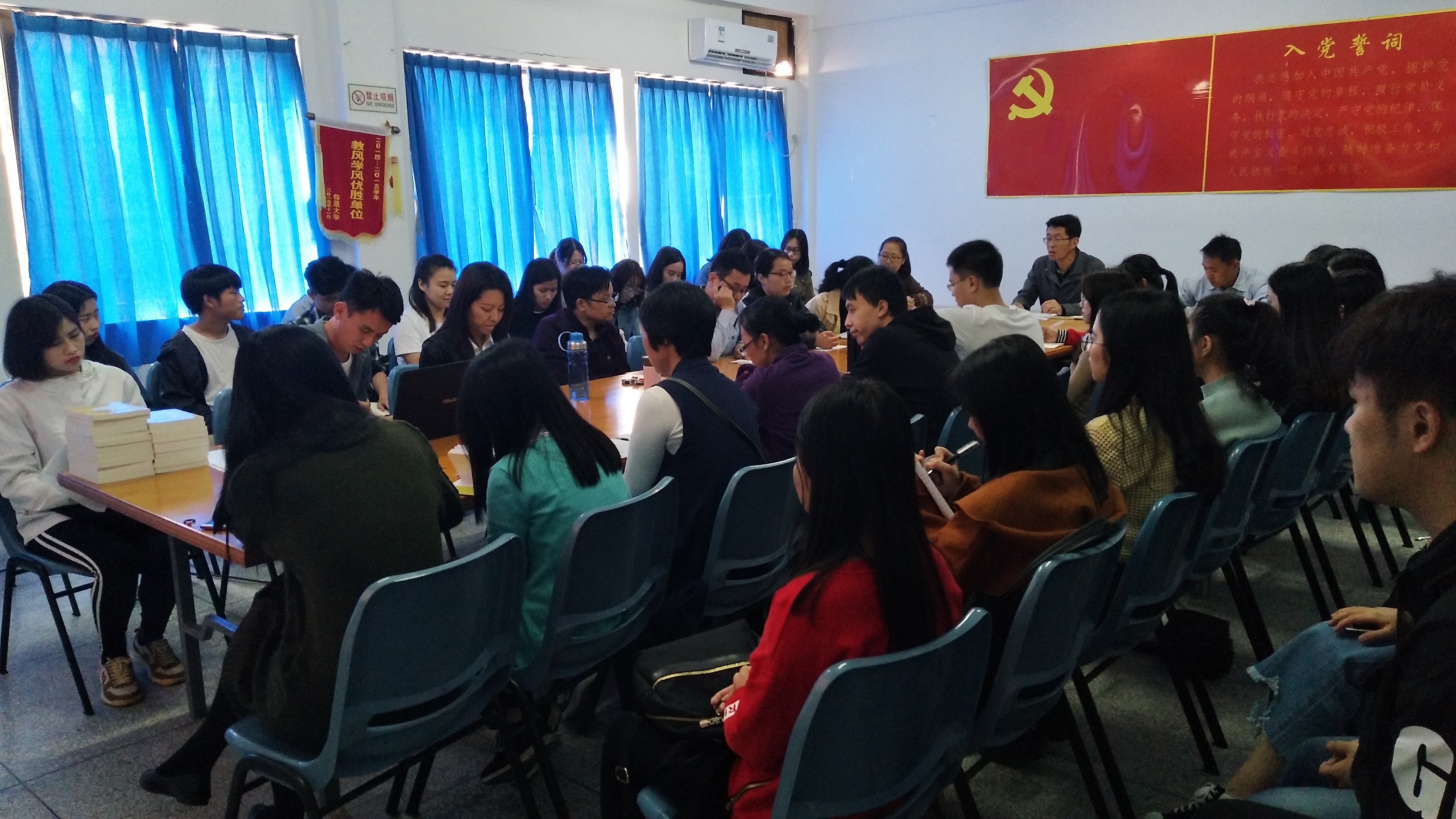 为进一步深入学习贯彻党的十九大精神,增强广大师生党员对十九大精神和十九届三中全会精神的全面领悟,4月18日下午,Beat365亚洲版官网党总支在曼谷楼206会议室召开全院师生党员大会。Beat365亚洲版官网党总支支委、教工党支部全体教师党员、全体辅导员以及各学生党支部全体在校生党员参加了此次大会。会议由党总支书记许惠铭主持。