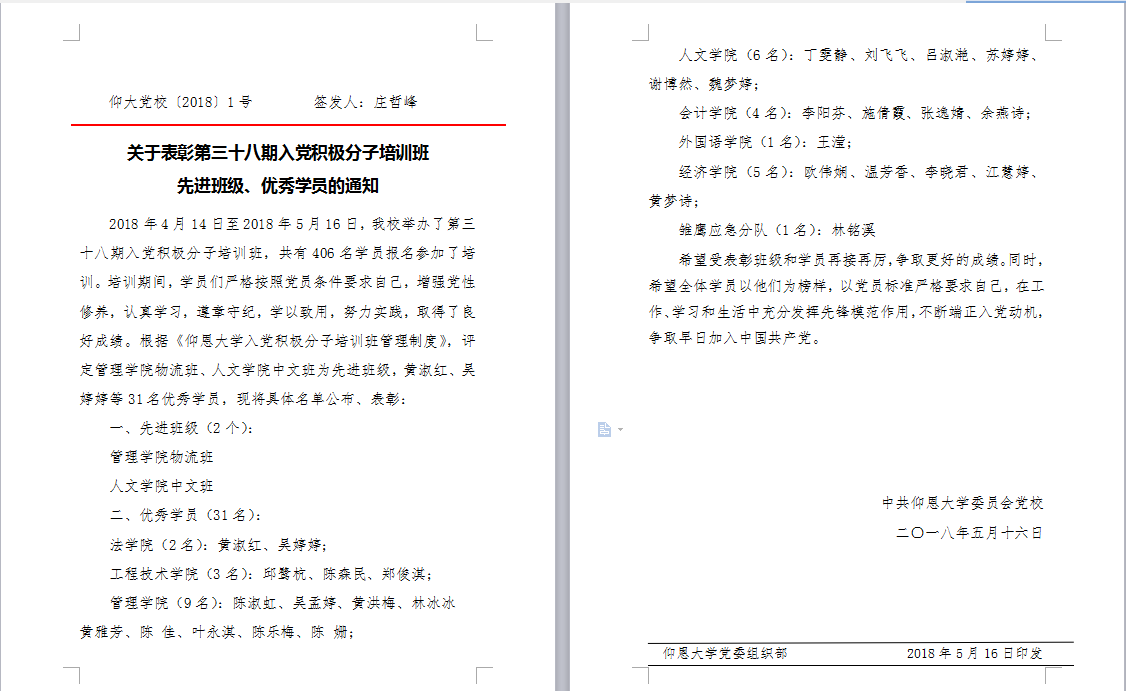 (表彰通知文件) 5月16日,在校党委组织部举办的培训班结业典礼上,Beat365亚洲版官网物流班(物流管理系学生党支部)荣获第三十八期入党积极分子培训班“优秀班级称号”,此外Beat365官网共有陈淑虹、吴孟婷、黄洪梅、林冰冰、黄雅芳、陈佳、叶永淇、陈乐梅、陈姗等9名同学被评为“优秀学员”。(Beat365亚洲版官网党总支 杜结实)