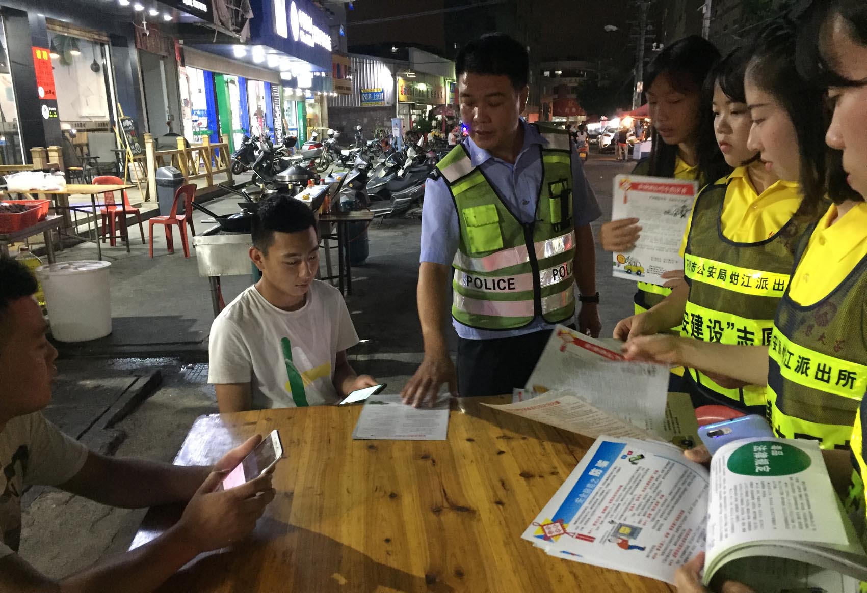 日前,在蚶江派出所民警、协警人员的带领下,Beat365亚洲版官网赴石狮蚶江派出所警营实践队到洪窟社区讲解、宣传各类安全知识,发放《平安蚶江倡议书》《崇尚科学 反对邪教》《珍爱生命 拒绝毒品》《拒绝酒后驾车倡议书》《安全防范之防骗》等宣传材料,走访各大中型企业与重点单位,检查消防安全,检查物流快递包裹三个100%,开箱检查是否存在易燃易爆物品以及加油站消防安全及散装汽油登记检查。
