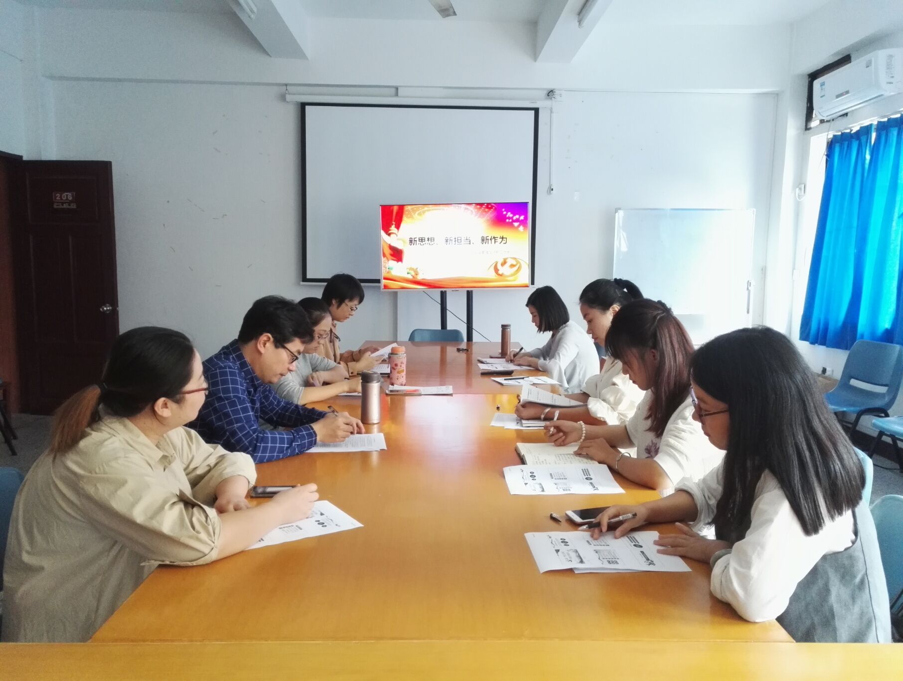 学习讨论会现场 研讨会上,支部书记李征带领支部成员共同学习了《关于进一步激励广大干部新时代新担当新作为的意见》全文,之后大家分别就《意见》展开了深入研讨,相互碰撞思想、交流认识。李瑞松同志总结出“想为、敢为、能为”三个关键词,指出《意见》着眼于调动和激发干部队伍的积极性、主动性、创造性,致力于解决干部不想为、不敢为、不能为等突出问题;刘清同志提出《意见》中的“建立健全容错纠错机制”值得大家在工作中学习借鉴;姚秋珍同志指出作为青年教师,在工作中“想作为”也“敢作为”,但在“能作为”上还有待进一步加强,需“撸起袖子加油干”强化自身本领。