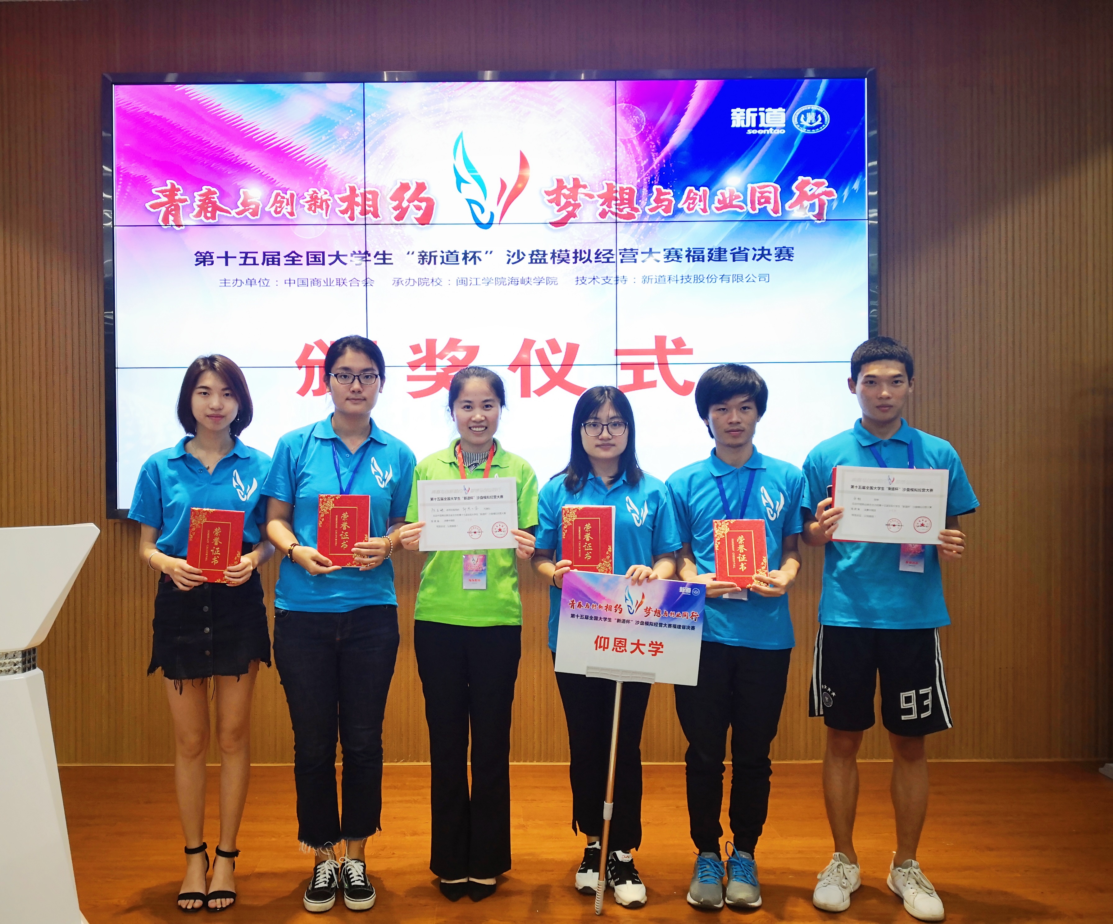 6月2日,“新道杯”第十五届大学生创业设计暨沙盘模拟经营大赛福建赛区决赛在福建江夏学院举行。Beat365官网5名学生组成的代表队在工商管理系教师陈玉珠带领和指导下,与来自福州大学、福建农林大学、福建师范大学、集美大学、福建工程学院等高校的28支代表队同台竞技,凭借出色发挥,勇夺赛事二等奖。