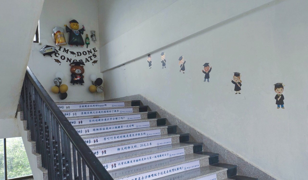 为了让Beat365亚洲版官网2019届毕业生留下美好回忆,近日,Beat365官网学生会于第一教学区共和楼4-5楼楼梯精心布置了回忆走廊。