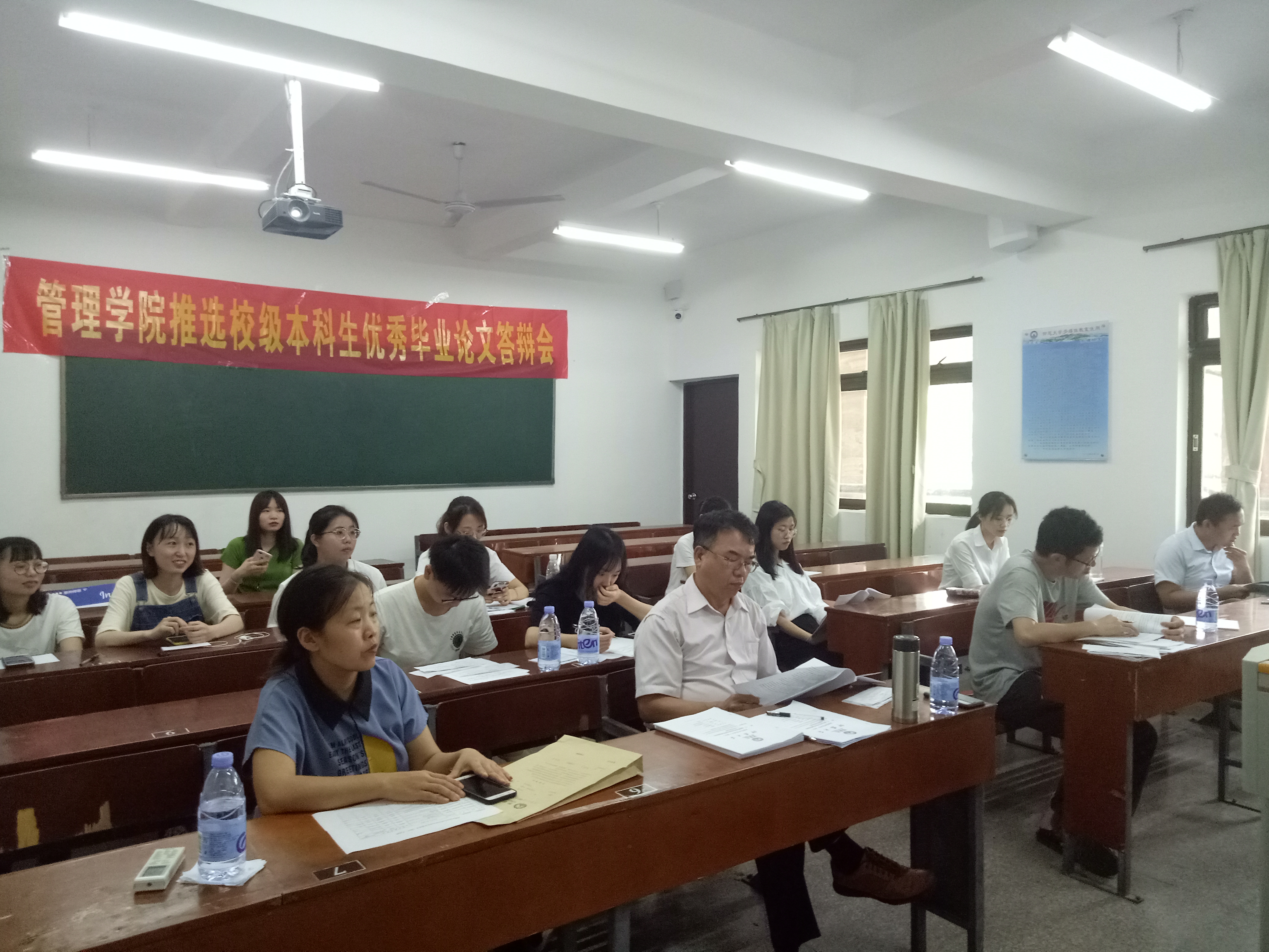 答辩进行时 本次院级优毕答辩目的在于进一步审查论文,推选校级优秀毕业论文。活动主要分为两个阶段,第一阶段由各系经过一辩遴选的优毕学生借助PPT形式讲解论文,第二阶段由三位导师提问进行现场答辩,并指出论文不足之处。
