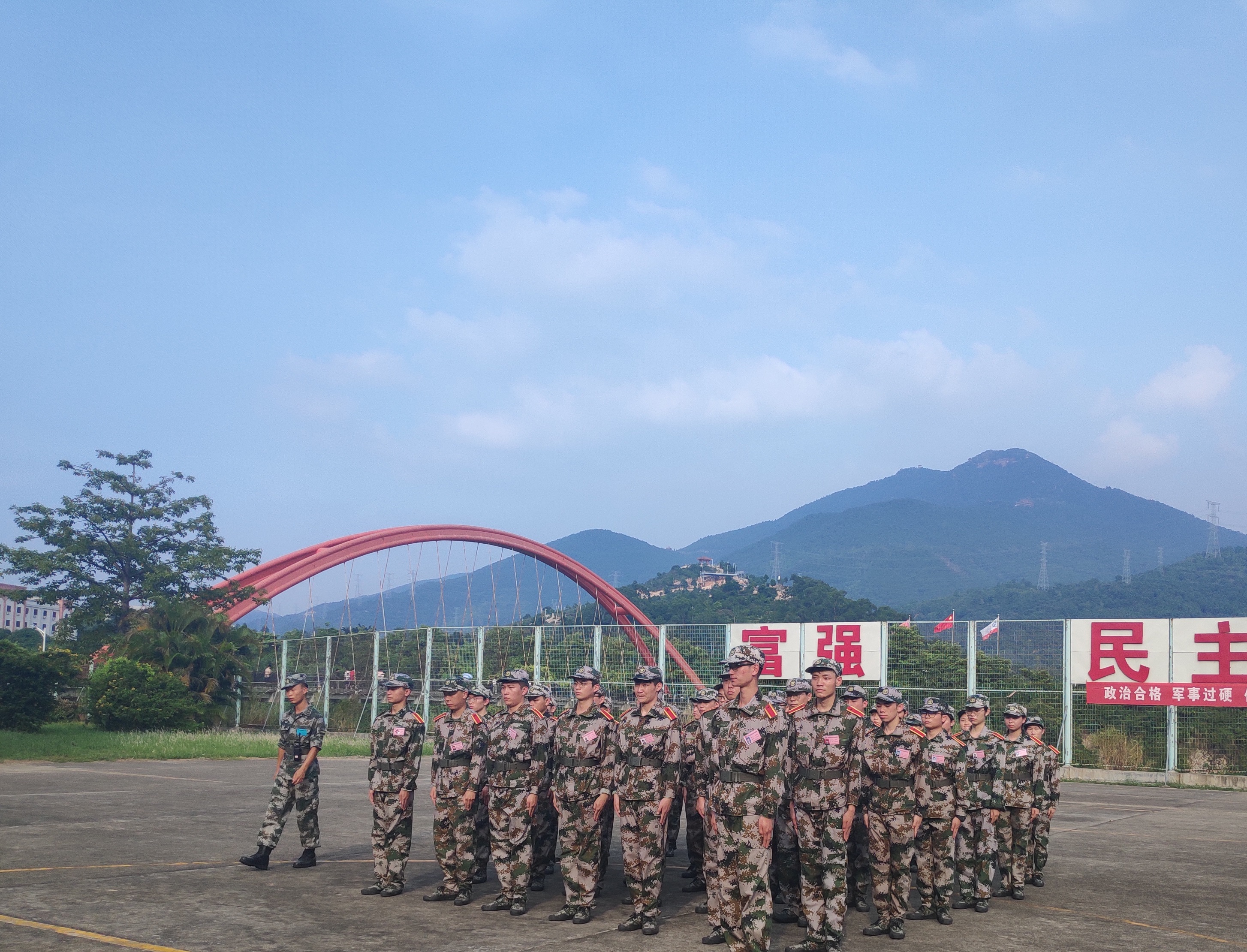 新生认真训练 在训练场上,新生们迈着整齐的步伐,喊着响亮的口号,朝气蓬勃,斗志昂扬,认真完成教官的指令,争取把每个动作做到最好。新生还在军训时,团学干部及成员们先在军训场地搭建帐篷,搬运纯净水,给新生提供临时的供水站点。到了新生休息时,团学成员为新生军训专用水壶装满水并与新生进行军训经验分享。团总支副书记陈王涛鼓励大家要克服军训的“苦”与“累”,在军训中锻炼自我,提升自我,在军训期间养成吃苦耐劳、坚忍不拔的优良品质,希望军训能够成为大家大学四年里的一段美好回忆。