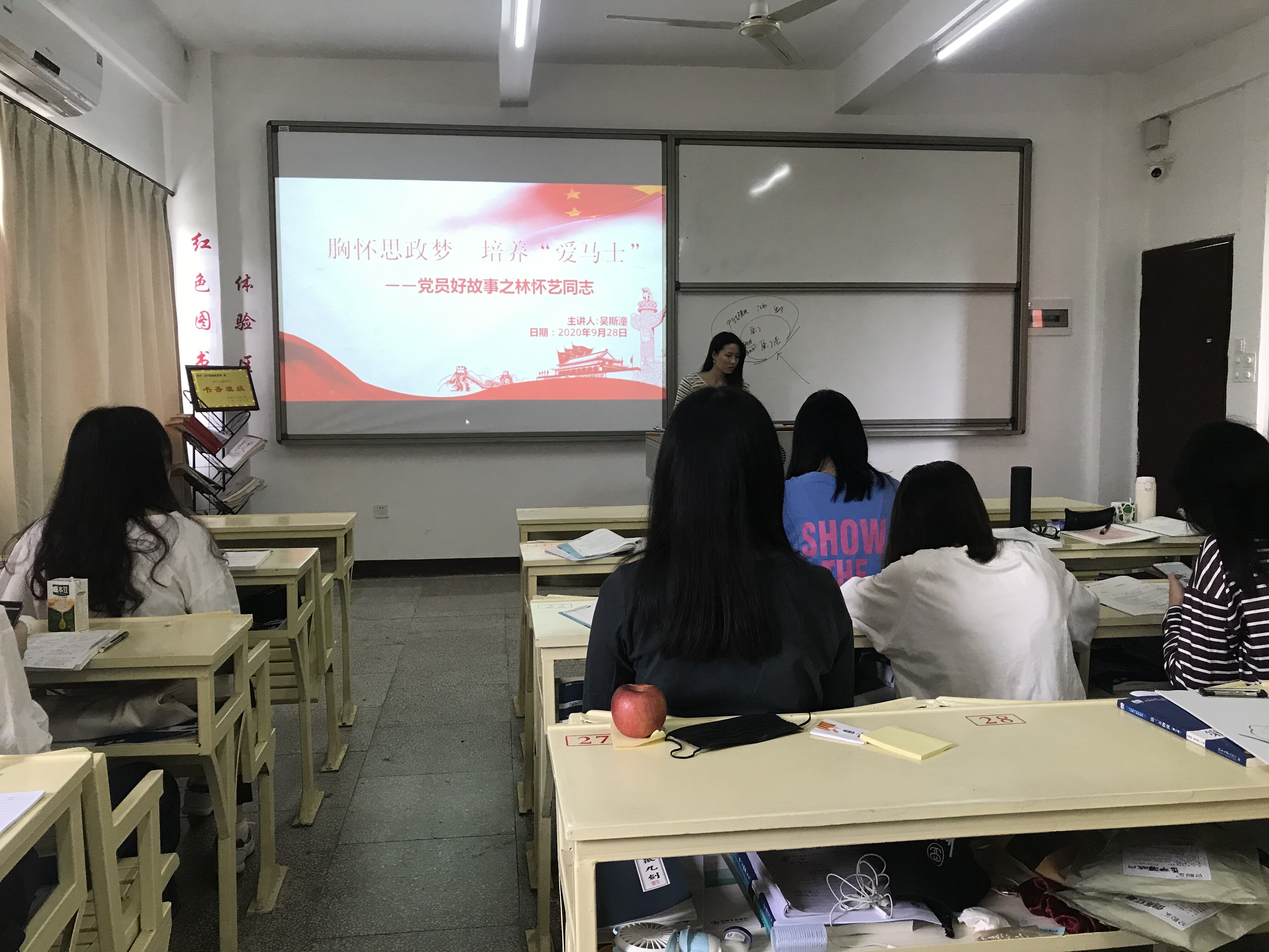 吴斯潼同志则以“胸怀思政梦,培养‘爱马士’”为题,给支部成员介绍了林忆怀先生的优秀事迹。她分享道,从1996年至今,林怀艺一直没有离开三尺讲台。在担任博士生导师之后,他仍然坚持在教学一线为本科生授课,力求将科学理论传播、理想信念教育、健全人格养成统一起来,追求课堂的真、善、美。他对理论和实践所进行的深入浅出、有理有据的讲解分析,提升了同学们对马克思主义的理解和信仰,使同学们由对马克思主义不甚了解的青年,变成了“爱马士”——热爱马克思主义的人士。