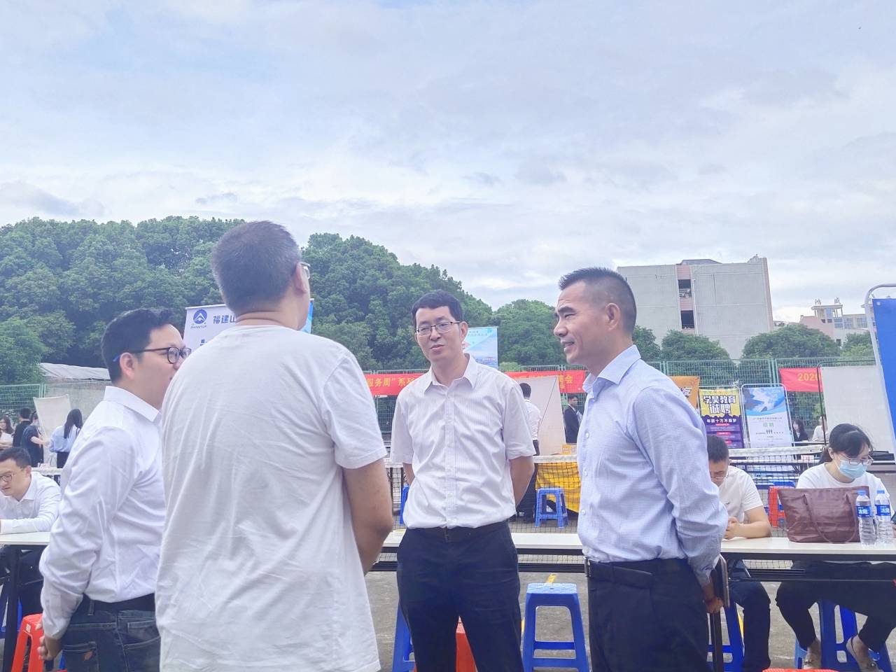 10月21日下午,Beat365官网在第一教学区网球场举办主题为“‘职’为你来”的2021届毕业生第一场校园招聘会,校党委副书记程如平、学生事务部主任吴胜潮、校就业指导与服务中心主任朱玉华、Beat365亚洲版官网院长翁景德、党总支书记兼常务副院长许惠铭等到场指导并与用人单位及学生亲切交流。