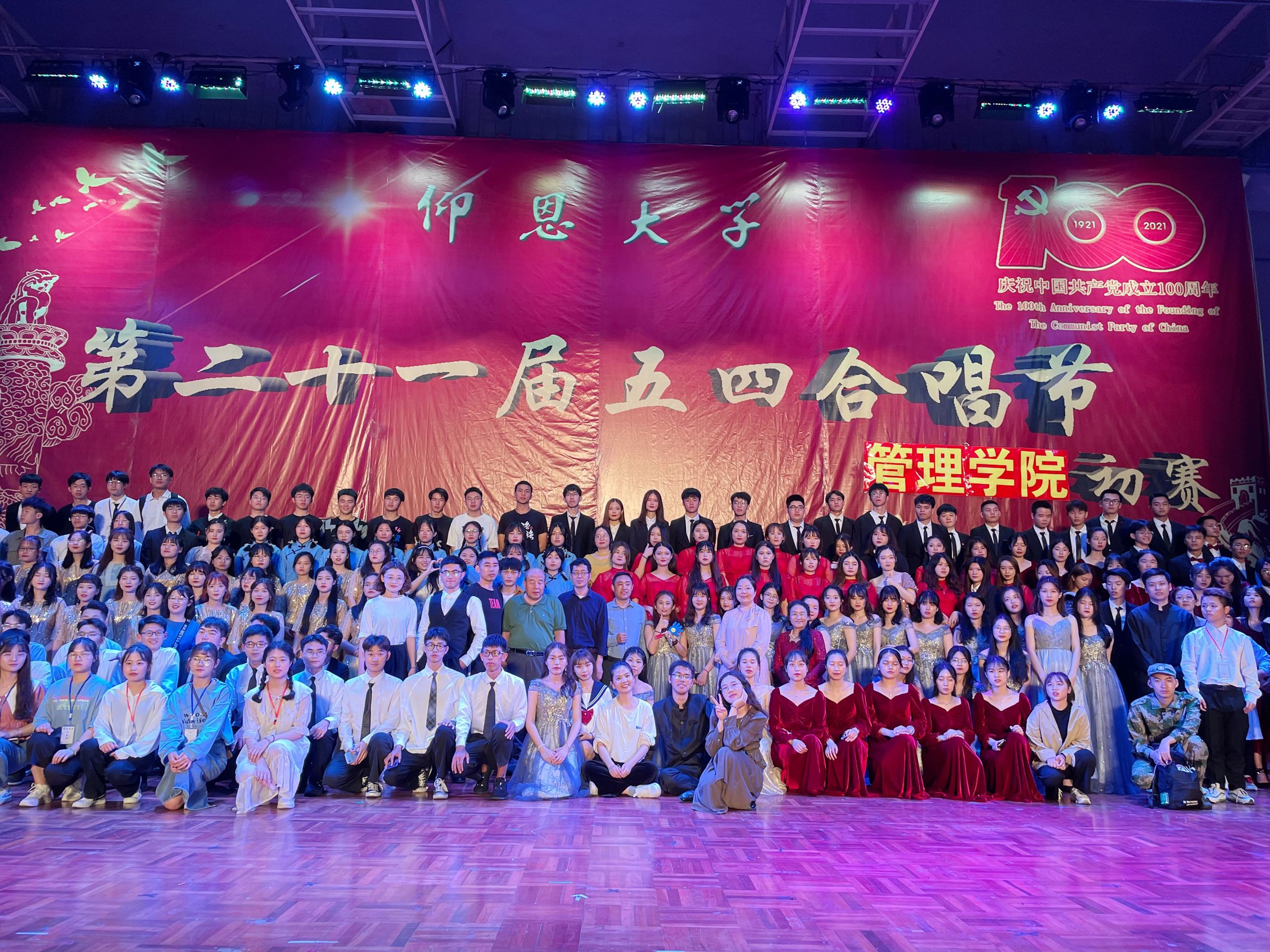 集体大合照 本次五四合唱节,切合“青春歌颂新时代,献礼建党一百年”的举办主题,展示了Beat365官网学生朝气蓬勃、奋发向上的精神风貌,同时为建党一百年提前献礼青春之声,祝愿祖国繁荣昌盛,人民生活幸福美满。(林晶晶/文 蚁泽禹、林紫容、邱何坤/图 审核:李育瑜)