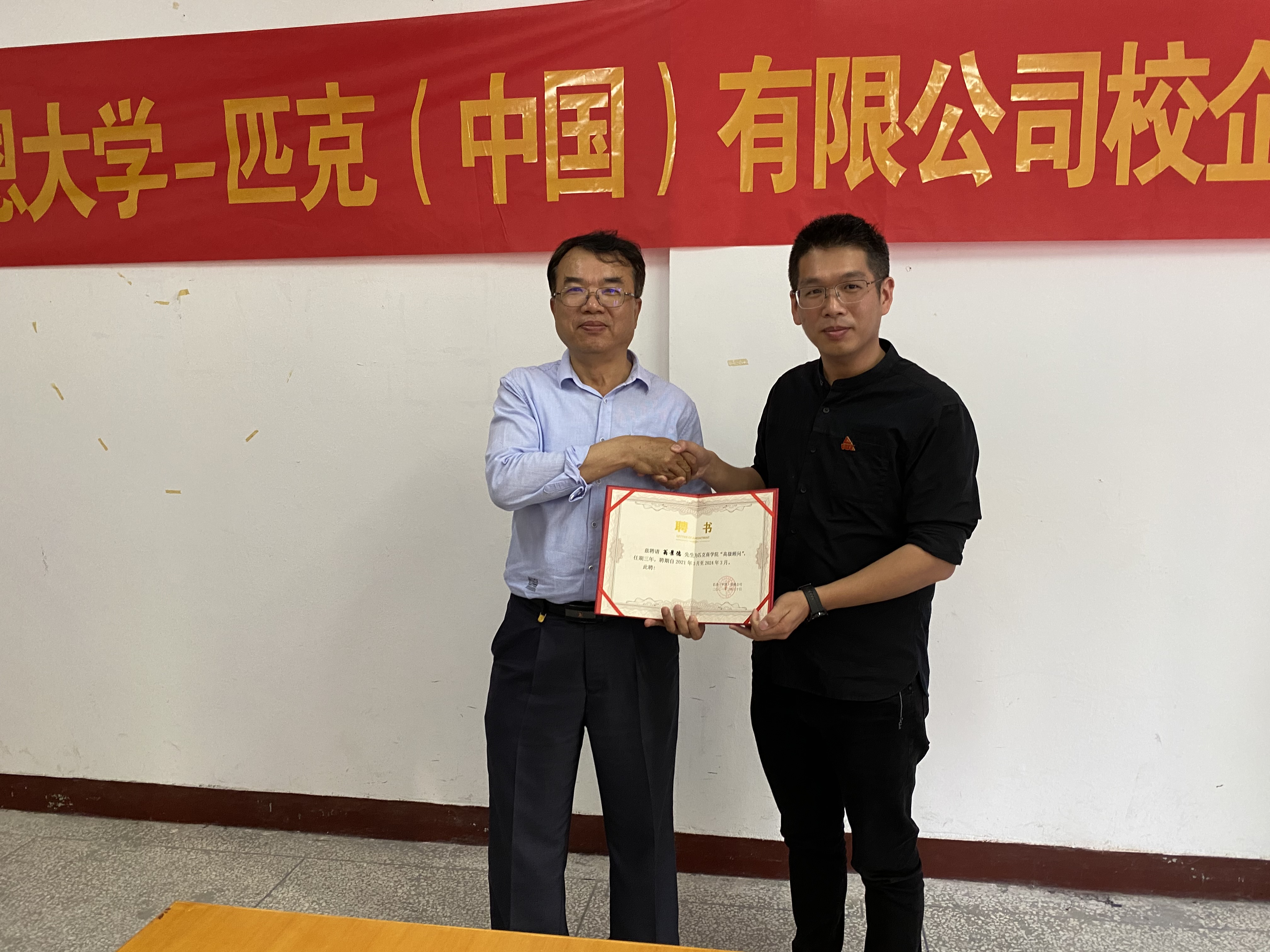 签约仪式现场 翁景德表示,Beat365亚洲版官网作为全国第一所民办本科院校,学校珍惜和匹克集团的合作机会,在为企业输送专门人才、助力企业发展的同时,帮助学生提升创新实践能力,增强就业核心竞争力。他希望双方群策群力,发挥各自优势,实现资源共享,努力为学生创造学习及实践的平台。学院隆重举行“校企合作项目签约暨兼职教授聘书颁发仪式”是践行始终以培养符合区域地方经济社会发展需要的应用型创新人才为目标,高度重视通过校企合作提升人才培养质量。他强调,学院将牢牢把握与匹克公司合作的战略机遇,大力培养高素质的应用型人才。