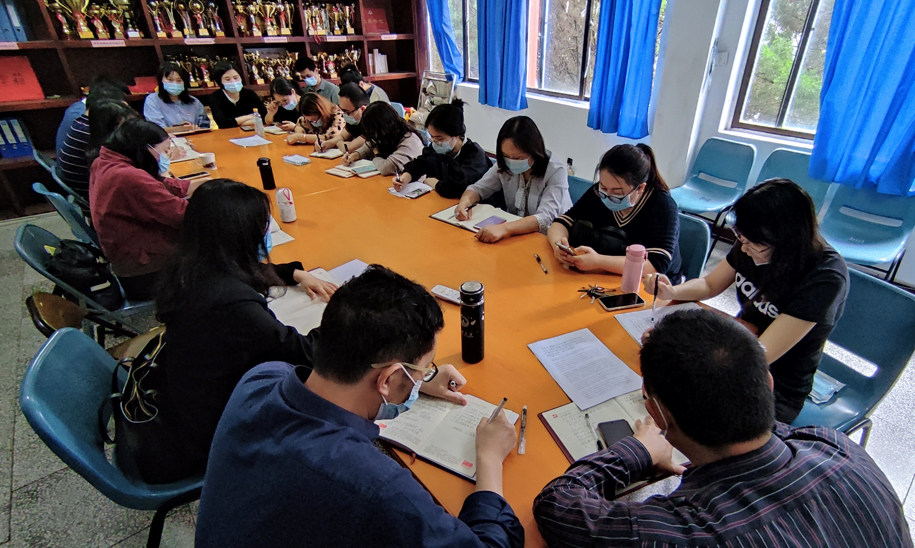 与会教师党员认真倾听 本次主题学习会有利于提升支部党员的政治素养,切实加强教师业务与党建工作融合,增强执行党内法规制度的政治自觉、思想自觉和行动自觉。