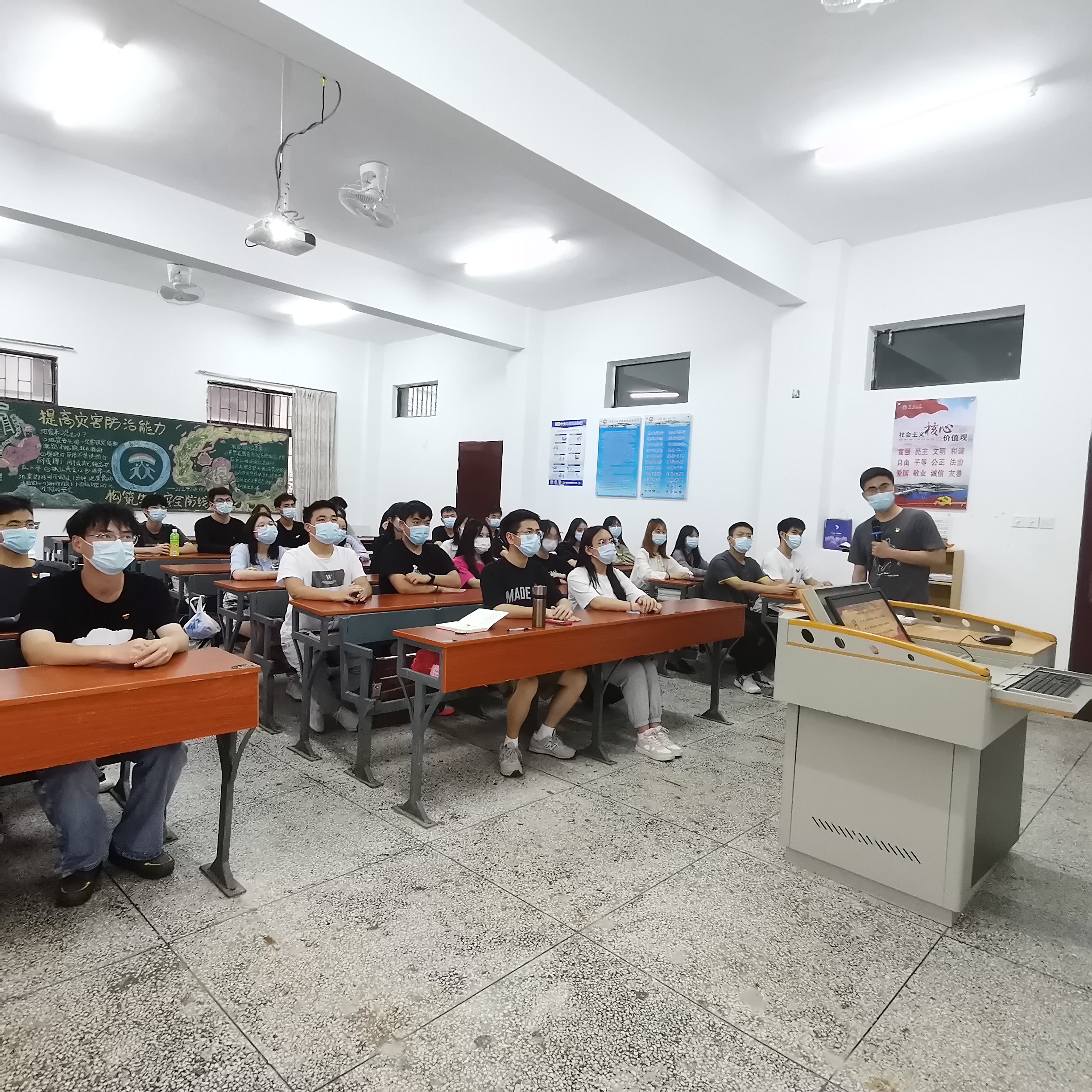 2022年5月25日,为深入学习贯彻十三届全国人大五次会议和全国政协十三届五次会议精神,提高党员干部的政治意识,增强使命担当,工商管理系学生党支部在祥贤楼101开展了“2022年全国两会精神学习”专题党课活动,支部全体党员参加。