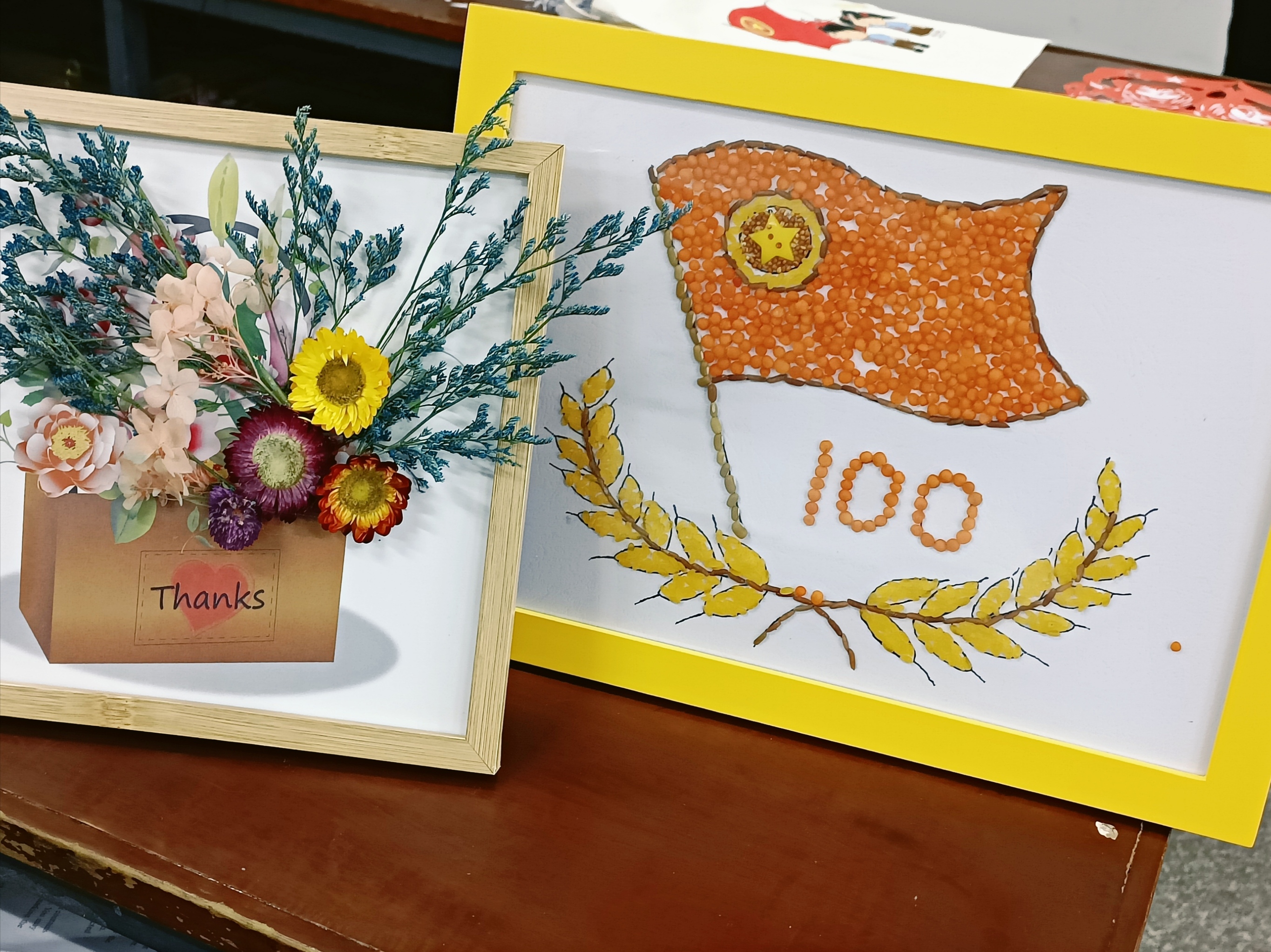 活动过程中,团员们用各种形式的创作向党表达了拳拳热爱之情。他们分别制作了手工DIY干花相框、建党红色主题DIY剪纸、党建主题DIY爱国手提环保袋、共青团主题数字画和共青团主题且宣传环保的手工DIY五谷粘贴画。团员们认真创作,沉浸其中,以一双双巧手制作出令人赞叹的精美作品。经过此次活动,更加坚定了团员们奋进向上、勇攀高峰的决心。身为新时代新青年,理应承担起建设中国特色社会主义的历史重担,成为振兴中国的国之栋梁。