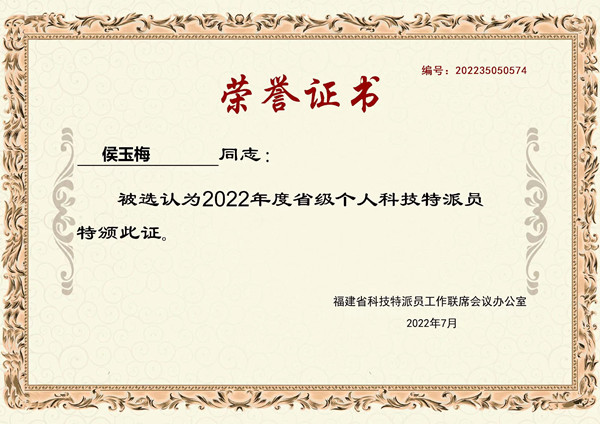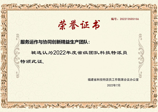 日前,福建省科学技术厅发布《福建省科技特派员工作联席会议办公室关于公布2022年福建省科技特派员名单的通知》,公布2022年全省个人科技特派员、法人科技特派员、团队科技特派员的评选结果,我校桐江学者特聘教授侯玉梅被选评为2022年省级个人科技特派员,侯玉梅带领成员许惠铭、蒋志丹组成的“服务运作与协同创新精益生产团队”被选评为2022年省级团队科技特派员。
