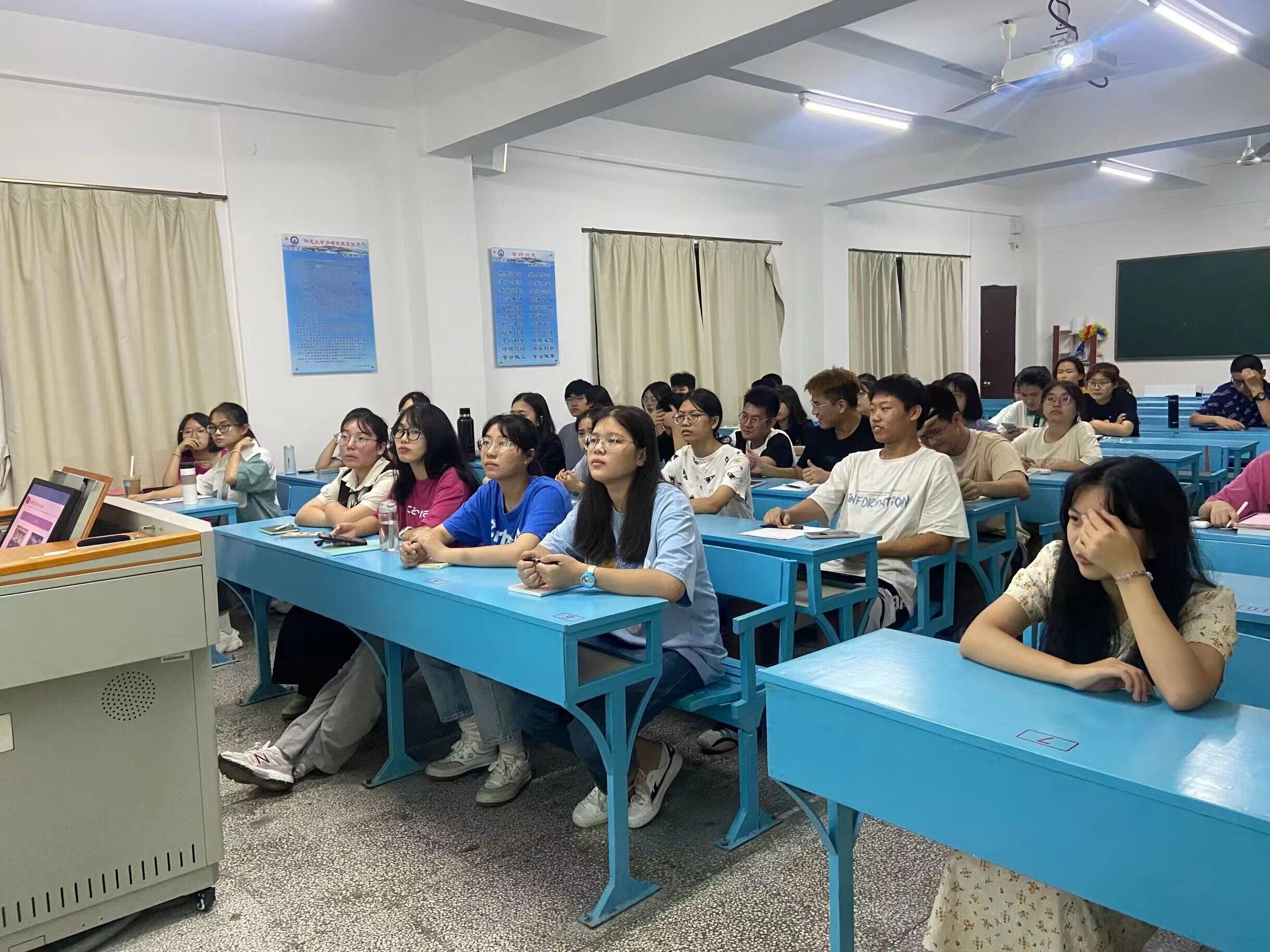认真听讲 本次活动开始,由全体党员分组进行,对2022级各班新生进行入党启蒙教育,党员同志们通过ppt的分享,从入党条件、入党要求及入党流程等方面进行讲述,解答了新生们对入党的疑惑,端正了新生们的入党动机,引导大家积极向党组织靠拢,敢于担当,勇于奉献,争做时代好青年!