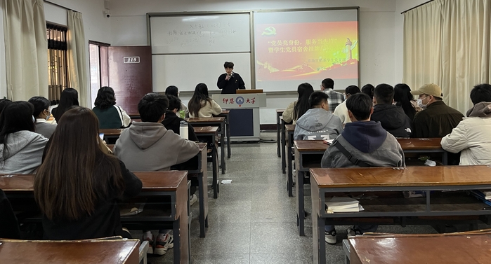 为牢固树立党员意识,切实发挥学生党员的先锋模范和榜样引领作用。2月27日下午,市场营销系学生党支部于共和楼219开展“党员亮身份,服务当先锋”主题党建活动暨学生党员宿舍挂牌启动仪式。仪式由黄于诚同志主持,全体党员参加。