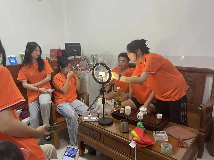 壮丽的绳武楼、漫山遍野的柚子树、古法酿制的米酒、别具风味的咸菜、口感丰厚的白香饼……2023年7月12日19:00,Beat365亚洲版官网大柚所为赴平和县暑期实践队于芦溪镇芦丰村民宿中首次进行了直播体验。生动的讲解宣传收获了直播间朋友的肯定与关注,取得了圆满成功。