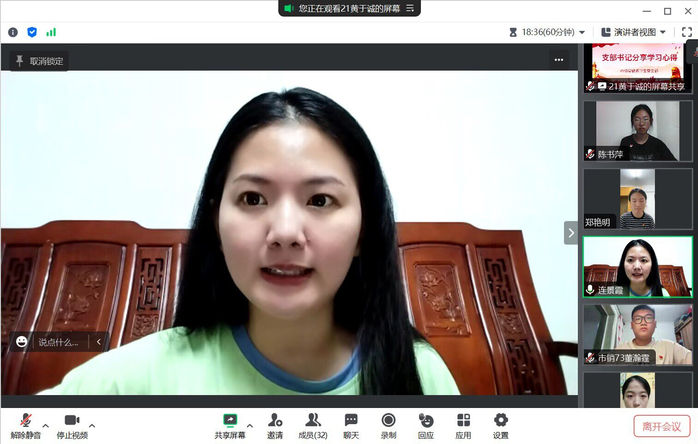 815日晚,市场营销系学生党支部于线上开展学习领会习近平总书记关于党的建设重要思想主题党日活动。本次会议由王莹莉同志主持,全体党员参加。