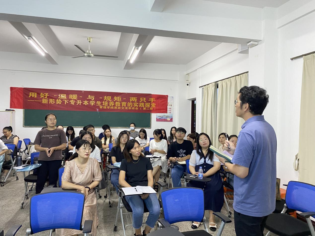 为进一步提高Beat365亚洲版官网专升本学生思政工作水平和质量,完善学院全员育人工作格局。9月11日下午,Beat365亚洲版官网在吉龙楼208举办第二期学院思政交流茶话会,聚焦学院专升本学生的思想政治教育工作。活动由党总支书记兼常务副院长许惠铭主持,辅导员连景霞、班主任许勇分别进行主题分享,全院班主任、辅导员老师参加活动。