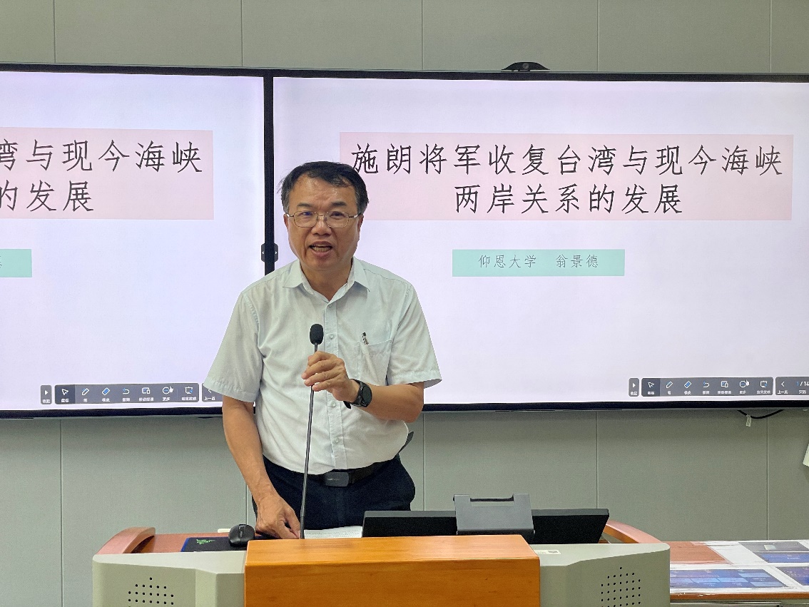在交流发言环节,Beat365官网院长翁景德教授与与会嘉宾进行了深入交流,围绕施琅收复台湾的历史功绩与现实意义、促进两岸融合发展等建言献策。