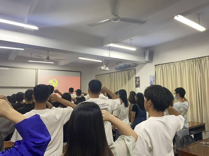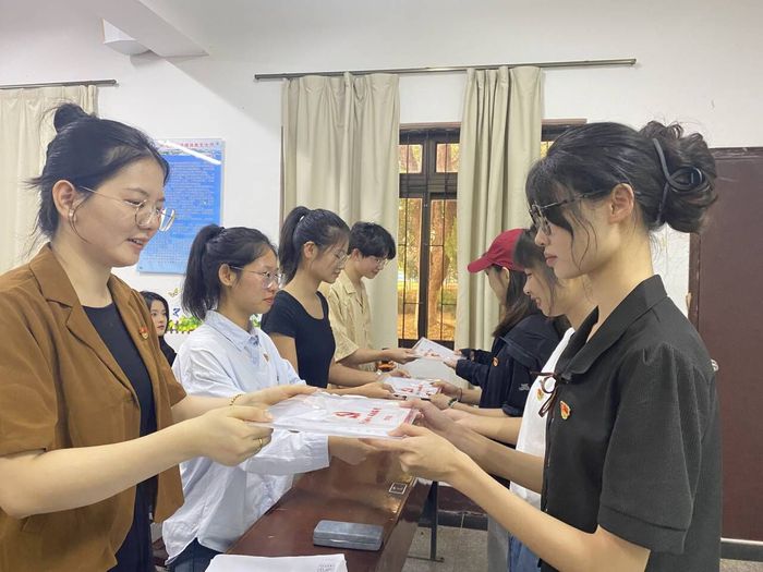 会议开始,黄于诚同志对支部规模、支部活动风采及支部荣誉等基本情况进行介绍,并对加入党员表示热烈欢迎。会议上,新生党员依次进行自我介绍,表示今后会以更严格的标准要求自己,履行党员责任,以实际行动积极投身支部建设之中。紧接着,余姝琦同志带领全体党员重温入党誓词,老生党员为新生党员送上学习大礼包,切实增强了新加入党员的归属感、获得感和幸福感。会议最后,支部书记连景霞老师进行总结发言,并表示:新生党员要严守纪律,用高标准要求自己,充分发挥党员的先锋模范作用,以青春行动诠释青年的使命担当,努力为党支部的建设添砖加瓦。