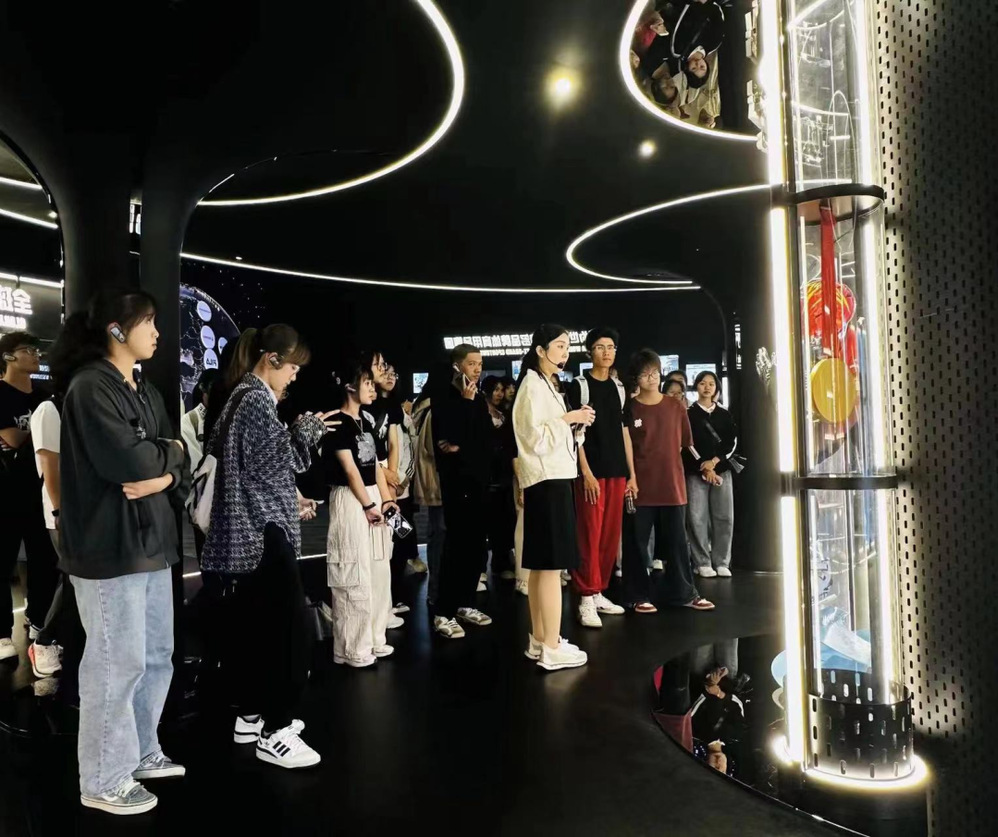 在晋江鞋业第二事业部智能制造车间,一台台自动化集成裁断设备有条不紊地运转着,工人们站在设备前不时地巡检,拿取、整理冲裁完成的鞋类配件,同学们感受着数字化、智能化与科技创新所带来的发展与变化。在针车车间,同学们近距离观看了运动鞋生产的整个流程,感受着“一针一线”反复锤炼的工匠精神。