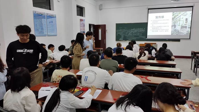 工业工程系团学各部门在主席团的带领下到新生班级进行宣传,实践部、组织部、办公室等部门部长依次简要介绍各自部门的工作职责,让新生同学们提前了解了各部门的分工。宣传到位后,学生会负责人下发了报名表,整个纳新活动现场气氛热烈,秩序井然,大家踊跃报名,团学干部们及时进行了分类统计工作。