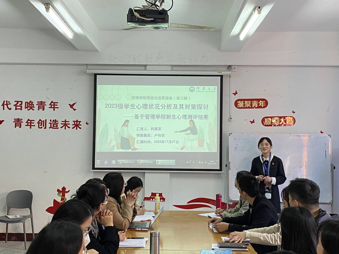 图2 特邀嘉宾会计学院心理工作站负责人卢传欢作主题分享