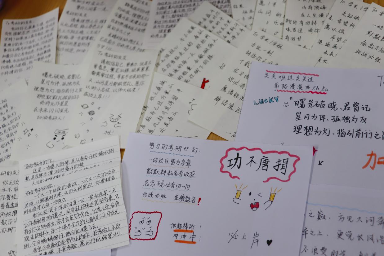图2 心理工作站成员们手写的加油纸条