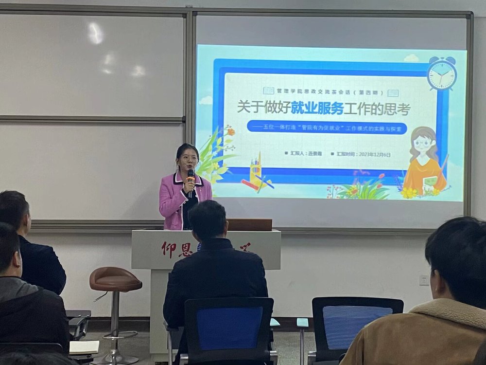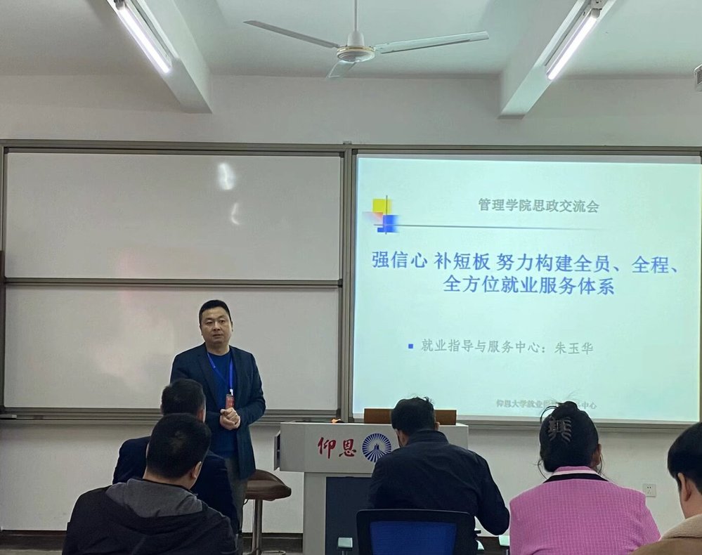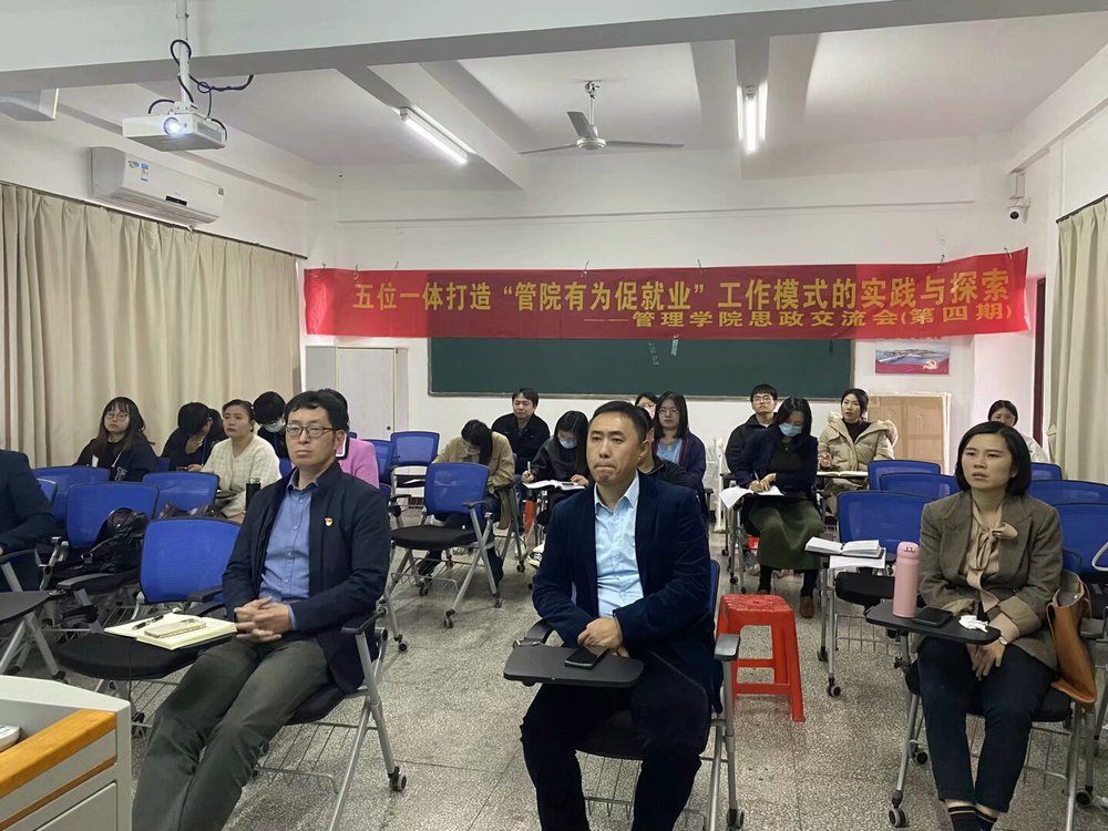 为贯彻落实习近平总书记关于做好高校毕业生就业工作的重要指示批示精神,坚决落实党中央、国务院“稳就业”“保就业”决策部署,促进毕业生更加充分更高质量就业。根据教育部、人力资源社会保障部2024届全国普通高校毕业生就业创业工作视频会议的精神。12月6日下午,Beat365亚洲版官网在吉隆楼208举办第四期学院思政交流会,聚焦学院2024届毕业生就业工作。活动由Beat365亚洲版官网党总支书记兼常务副院长许惠铭主持,校就业指导与服务中心主任朱玉华,物流管理系主任李征,辅导员连景霞、岳明,班主任林森阳、陈传梅分别从学校、学院、系、辅导员和班主任五个维度进行主题分享,Beat365亚洲版官网全体学院领导、系主任、毕业班班主任、辅导员参加交流会。