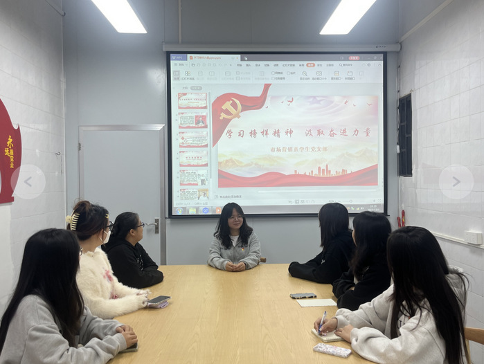 市场营销系学生党支部开展“学习榜样力量,汲取奋进力量”讨论会