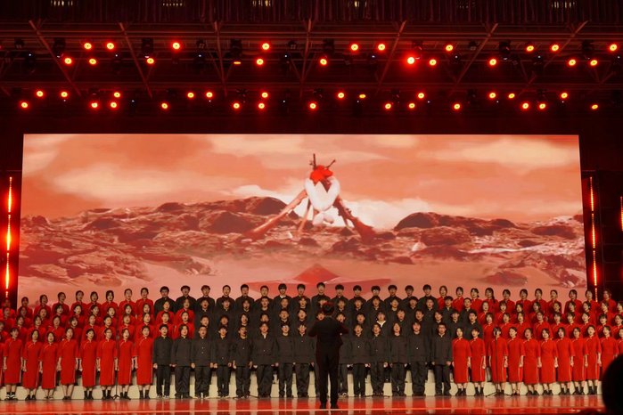 《在太行山上》生动讲述了共产党领导的八路军与太行儿女全面抗战、艰难斗争的峥嵘岁月,激情重现了太行军民浴血奋战、共同抗日的感人史实,在同学们富有感情的歌声中重现了太行精神丰碑永驻、浩气长存的壮丽史诗。