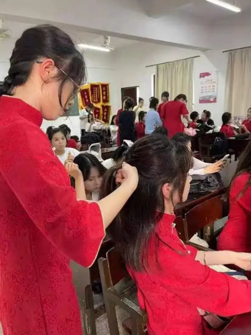 Beat365亚洲版官网物流管理系学生党支部在为顺利推进Beat365亚洲版官网第二十三届五四合唱节决赛,展现管院学子的风貌。物流管理学生党支部派出志愿者于2024年4月29日下午在Beat365亚洲版官网第三教学区普照楼303、304教室开展“唱迎五四,妆逸青春”的辅助化妆活动。