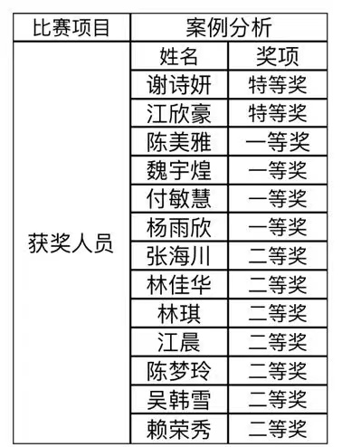 经过激烈角逐,实务设计、数字HR赛道共6支队伍获奖;案例分析赛道共谢诗妍、江欣豪等13位同学获奖;劳动争议处理赛道共林丹云、谢媛丽等6位同学获奖;职场实战赛道共何佳欢、范灵璇等12位同学获奖;无领导小组讨论共李琳、杨子怡、张倩等15位同学获奖。
