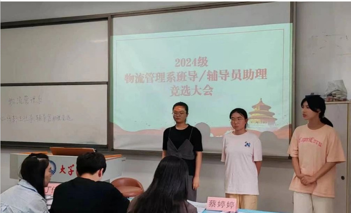 应变能力及处理问题能力进行综合讨论,经商议,最终选出物流管理系2024级新生班导9名,辅导员助理4名,具体名单如下: