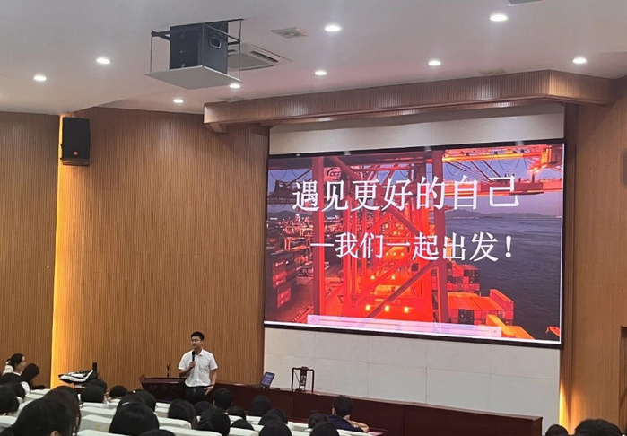 陈绍炯老师作为此次的主讲人,分享了他给2024级物流管理新生的寄语:向上,向善。第一个是“向上”,抬头。争取自己想要的东西,要踮起脚尖,要抬起头去看,去够,争取我们想要的东西。第二个是“向善”,这是从校训“学会做人”,“学会做事”两个方面来谈的。希望物流新生们在学校学习的过程当中,能够去关心身边的同学、老师。