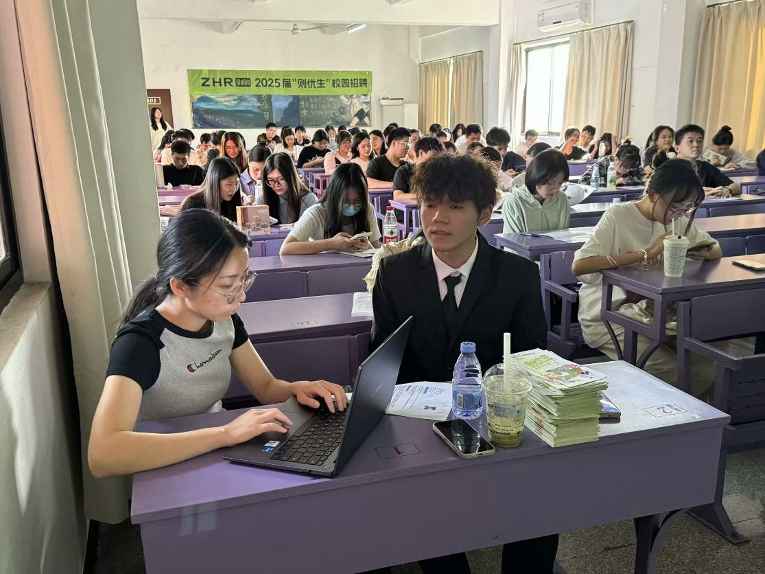 宣讲会伊始,福建则则服饰有限公司负责人以公司的发展历程为起点,对公司的业务状况、人才培养、福利体系、招聘岗位需求进行了介绍,并从业务发展、工作地点、岗位专业等方面详细讲解了公司的招聘计划。问答环节,同学们积极提问,从工作内容到职业发展,从团队氛围到培训机会,每一个问题都体现出同学们对未来职业的认真思考。负责人结合实际情况耐心解答,为同学们消除疑虑,让同学们对工作环境和企业文化有了更深入的了解。答疑结束后,同学们积极地向企业单位进行自我推介,现场洽谈求职气氛热烈,本次宣讲会在线下面试中圆满结束。