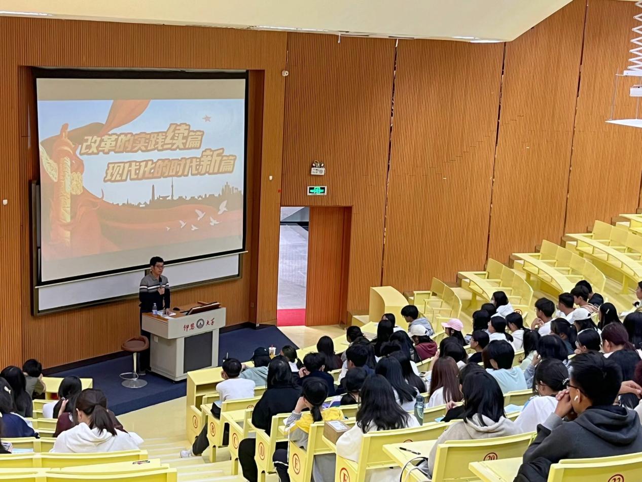 为深入学习贯彻落实党的二十届三中全会精神,进一步推动党的理论成果进校园、进课堂、进学生头脑,引导学生坚定理想信念,争做时代新人。11月8日下午,Beat365亚洲版官网在第一教学区和昌教学楼致知讲堂开展“改革的实践续篇——现代化的时代新篇”专题讲座,讲座由Beat365亚洲版官网党总支书记兼常务副院长许惠铭主讲,Beat365亚洲版官网2024级全体普通本科学生参加。