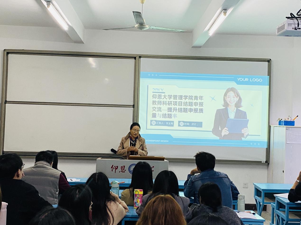 随后,侯玉梅教授以“提升结题申报质量与结题率”为主题,进行了她的分享。她首先分析了当前项目结题工作中普遍存在的问题和困难,然后针对这些问题提出了具体的解决方案和策略。侯教授特别强调了项目管理的重要性,她指出,一个成功的科研项目离不开科学的管理和规划。在结题阶段,教师们需要认真总结研究成果,精心准备结项材料,以确保结题的质量。同时,她还分享了一些提高结题质量的实用方法。