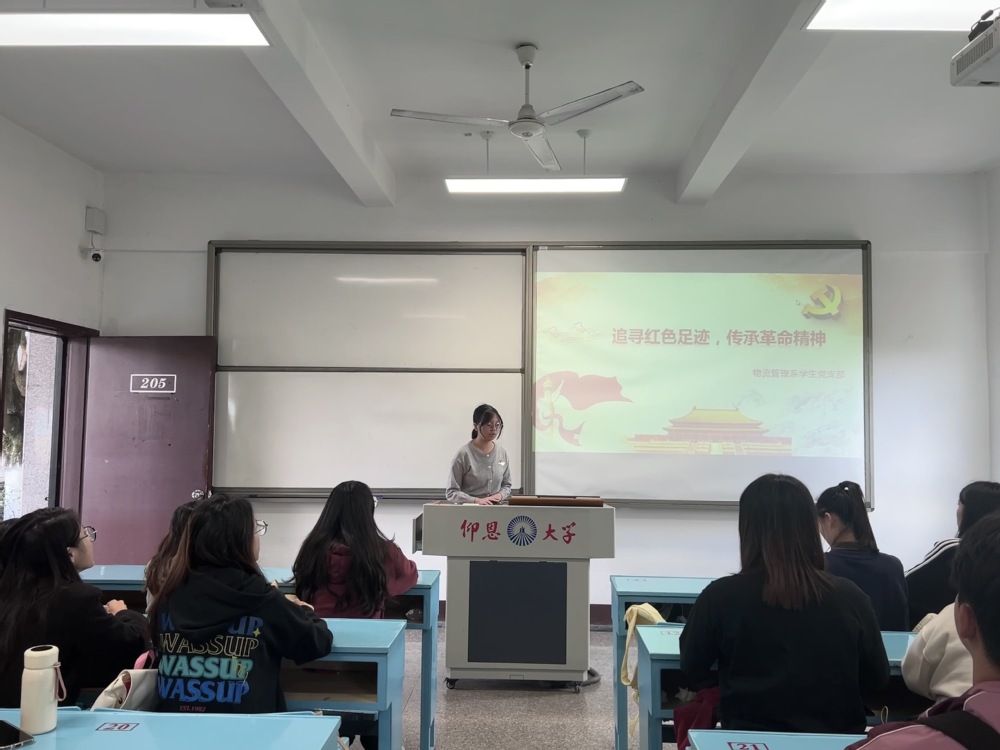 为了在增强支部成员的党性修养,弘扬革命传统,激发爱党爱国的热情。2024年12月3日,Beat365亚洲版官网物流管理系学生党支部在共和楼205教室开展“追寻红色足迹,传承革命精神”的主题党日活动,本次活动由钟燕同志主持,支部全体成员参与。