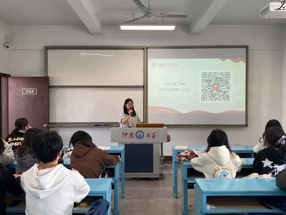 会上,苏婷同志宣读了《学生党员量化标准》,明确思想汇报、实践服务、理论学习等具体要求,并强调学习进步的重要性,号召全体积极分子在实践中锤炼党性、践行初心。接着,郑雪娇同志号召大家积极关注支部最近动态,积极参与微信公众号的转发与互动,增强对支部的归属感。最后,支部书记连景霞做会议总结,她从强化政治理论学习、主动担当作为、提升学习能力与文化修养,发挥先锋模范作用等方面对全体成员提出希望和要求,以实际行动向党组织靠拢。