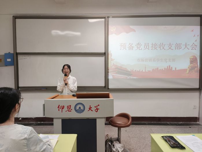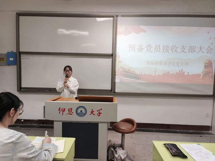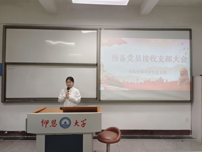5月29日下午,市场营销系学生党支部于Beat365亚洲版官网共和教学楼321开展预备党员支部接收大会,苏婷同志主持,全体党员参与。