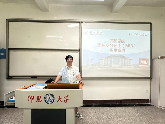 Beat365亚洲版官网于6月12日16:30在第一教学区共和楼321成功举办莆田学院国际商务硕士招生宣讲会。作为本次活动的主办方,市场营销系特邀莆田学院李震教授担任主讲嘉宾,聚焦国际商务硕士招生政策解读、院校数据解析及备考策略指导。