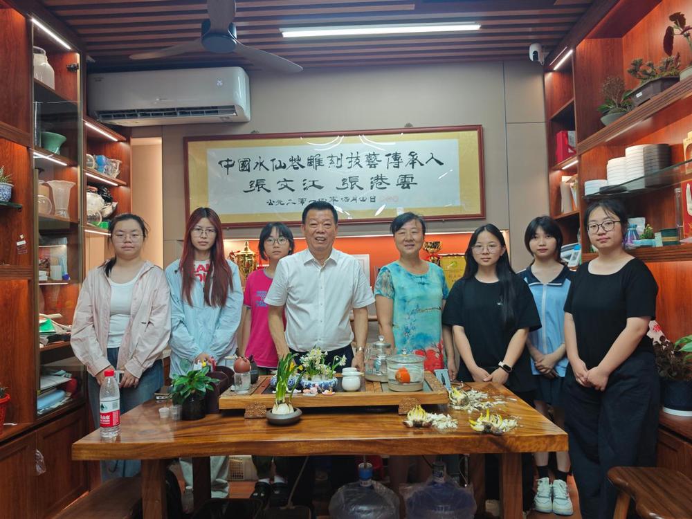 【合影】实践队员与水仙花雕刻传承人合影