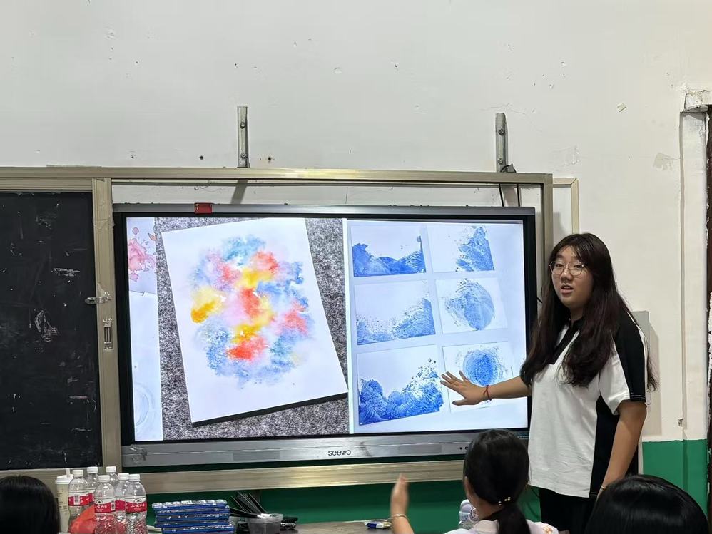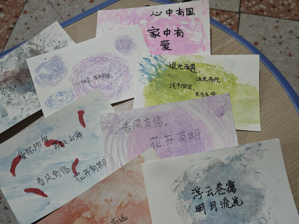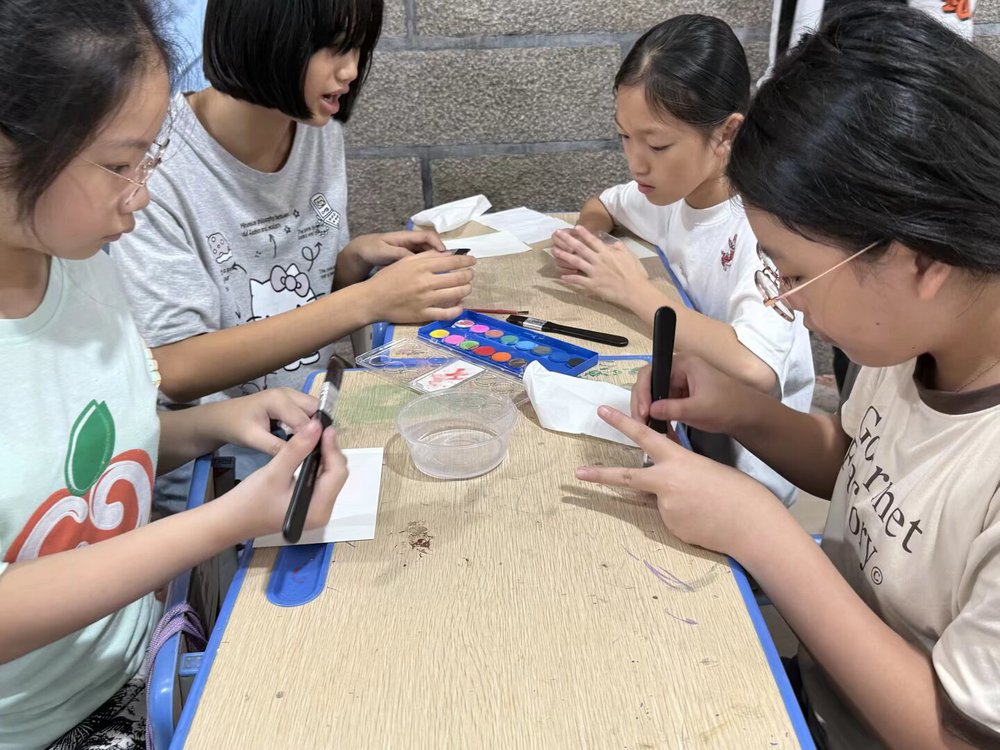 一张卡纸,几滴颜料,晕染的是艺术之美,传递的是薪火温情。实践队以染卡为桥,让孩子们在动手实践中感受创造的乐趣,更在笔墨间种下对未来的向往。