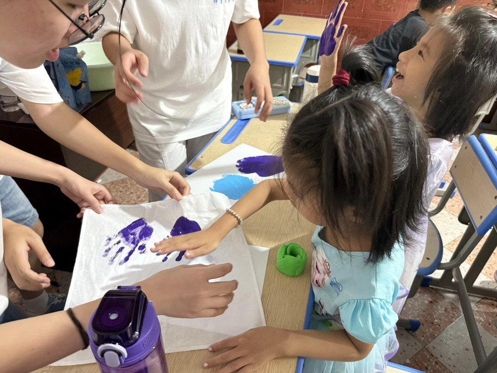 【实践】实践队员教孩子们在画布印手印