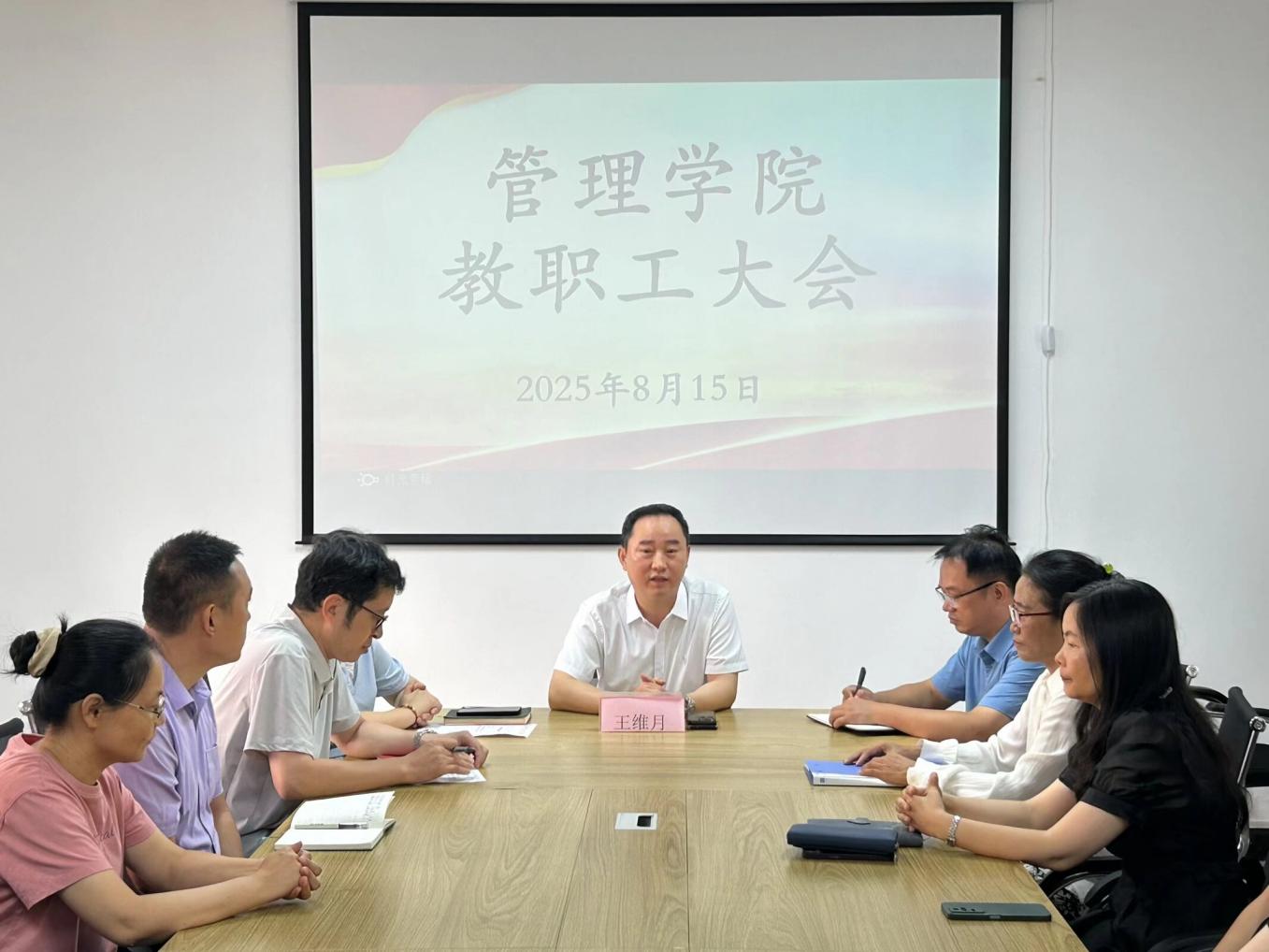 2025年8月15日上午9点,Beat365亚洲版官网在仰光楼209召开全院教职工大会,宣布侯玉梅教授任职Beat365亚洲版官网院长的重要决定。此次大会由Beat365亚洲版官网党总支书记兼常务副院长许惠铭主持,Beat365亚洲版官网校长王维月、学校办公室主任叶钦南、人事处处长杜衡及全体教职工出席。