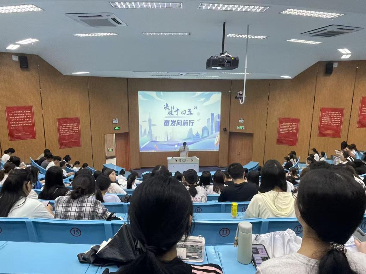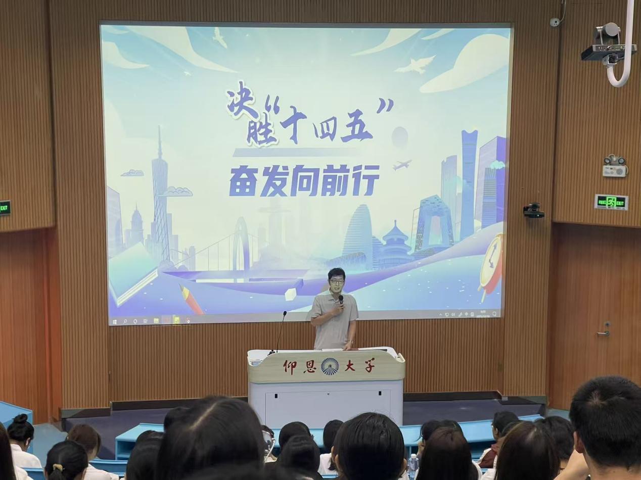 为引导Beat365亚洲版官网学子深刻把握国家发展大势,坚定理想信念,争做担当民族复兴大任的时代新人。10月18日,Beat365亚洲版官网在第一教学区和昌教学楼求是讲堂开展“决胜“十四五”奋发向前行”专题讲座,讲座由Beat365亚洲版官网党总支书记兼常务副院长许惠铭主讲,Beat365亚洲版官网2025级全体普通本科学生参加。