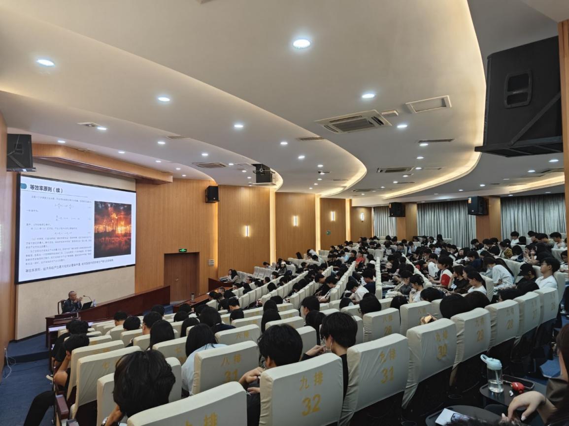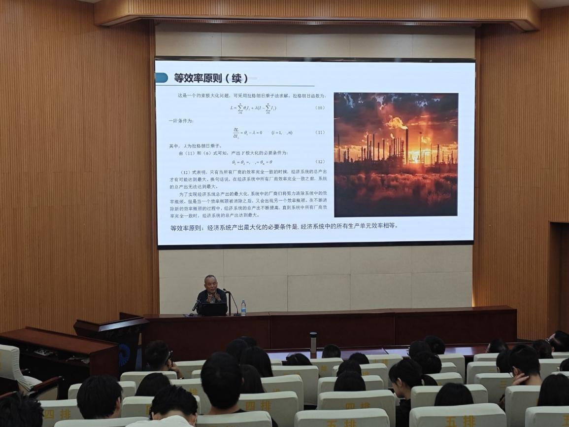 讲座开篇,杨德全副教授精准阐释了等效率原则的核心内涵:“经济系统产出最大化的必要条件,是系统内所有生产单元效率相等。”他通过清晰的逻辑推导与理论铺垫,让在场师生快速把握这一原则的本质,为后续应用案例分析奠定扎实基础。