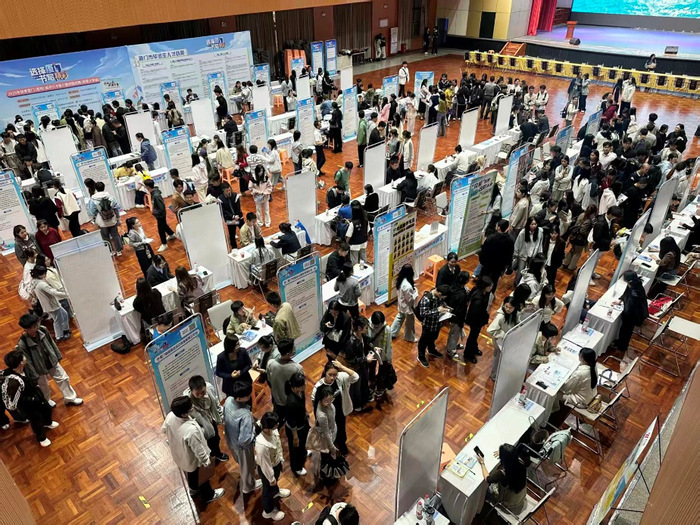 招聘会现场,汇集了厦门众多知名企业,涵盖金融、商贸、教育、餐饮、企业服务等多个领域,提供市场营销、财务、人力资源、运营管理等丰富岗位,满足不同专业毕业生的就业需求。现场人头攒动、气氛热烈。应届毕业生们手持精心准备的简历,穿梭于各个企业展位之间。他们仔细研读招聘信息,与企业招聘人员面对面深入交流,积极展示自身专业技能与综合素质,不少同学与意向企业达成初步就业意向。