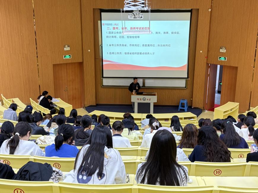 这场考公考编讲座中,华图讲师先结合大环境与管院专业特点,引导学子明确职业定位;随后聚焦各类岗位,拆解核心要求、对比竞争特点,分享选岗技巧,并结合2025年最新数据梳理福建考编时间节点,助力学子精准规划备考、提升上岸效率。